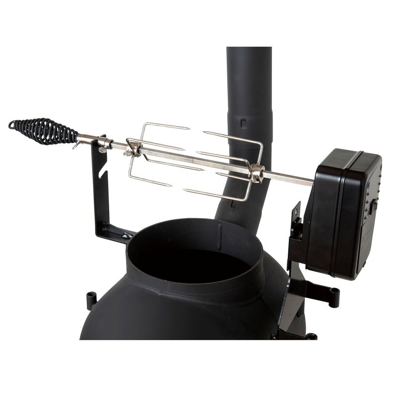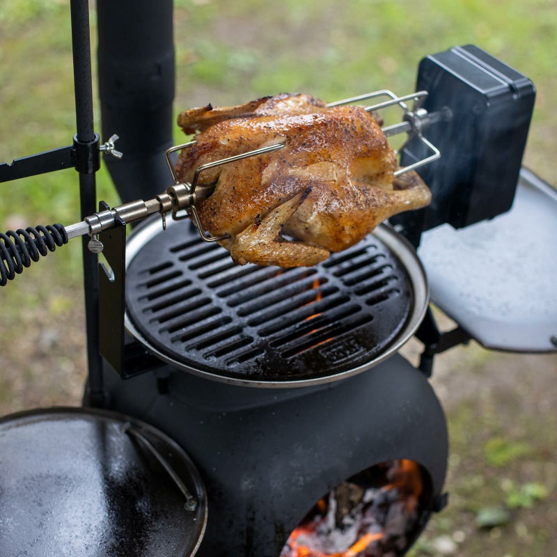 電動モーターで回転しながらワイルドに焼き上げます。
