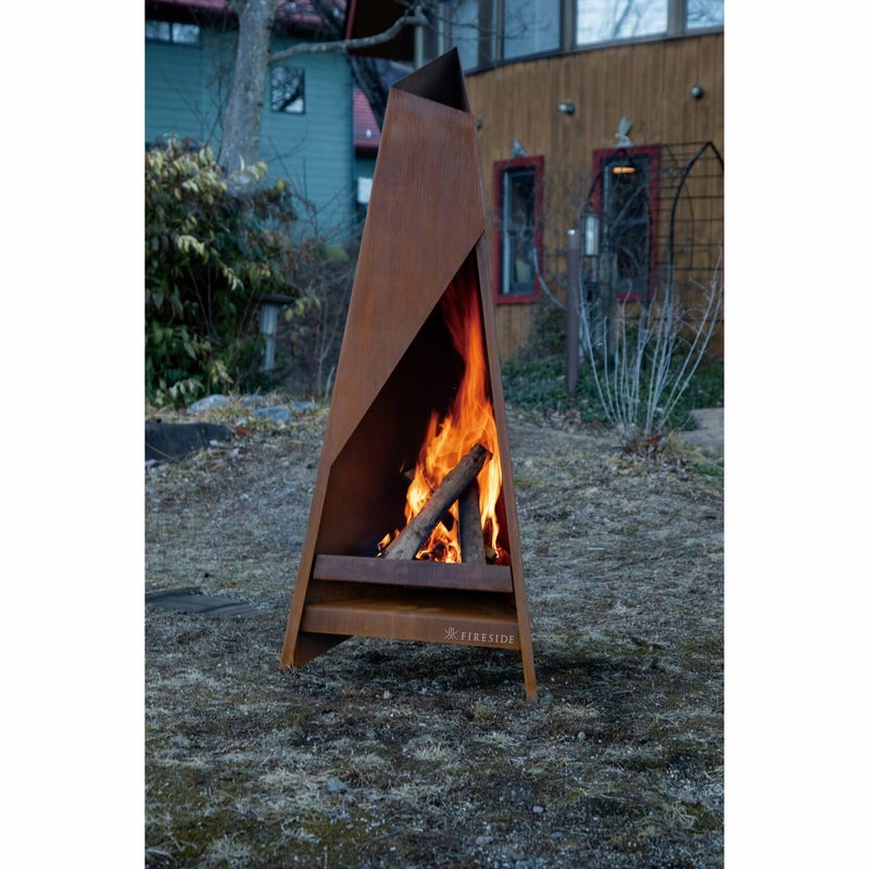 錆びた鉄の味わいを楽しむアウトドアファイヤープレイス。