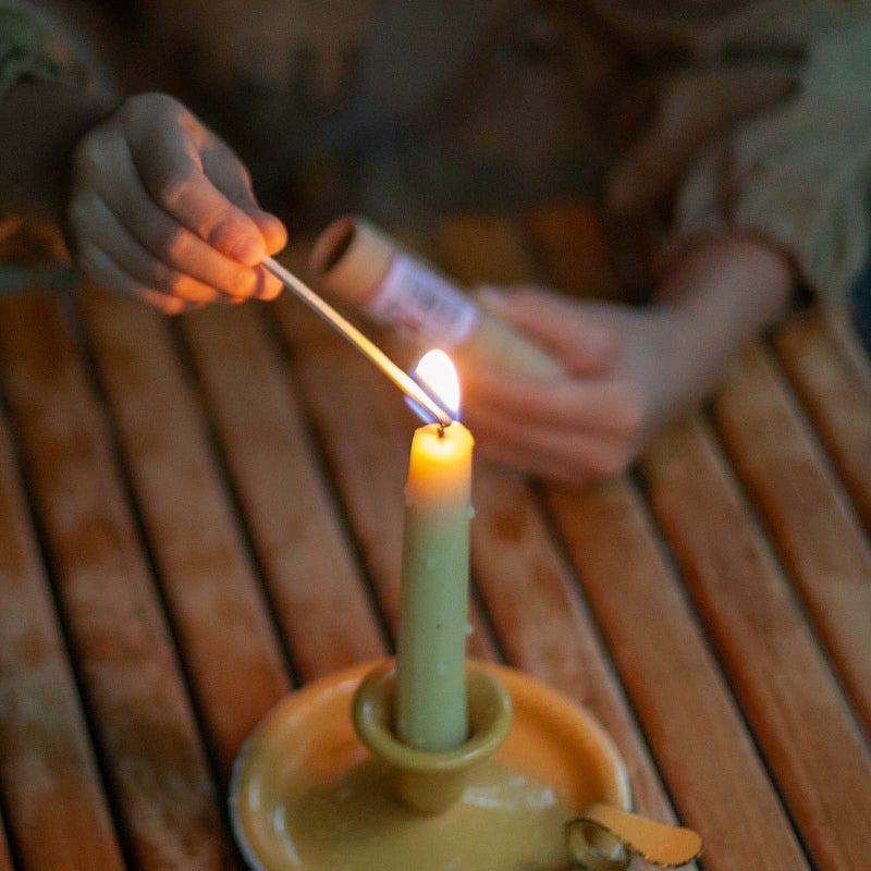 長い柄が長時間燃え続け、かつ火から距離を保ちながら握れるため、安全に点火することができます。