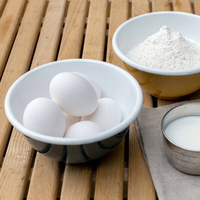 小ぶりなミキシングボウルは、サラダボウルとしてそのまま食卓に出してもOKな可愛らしさ。 琺瑯ならではのガラスの滑らかさを持ち、匂い移りがなく熱や水に強い作りが特徴です。