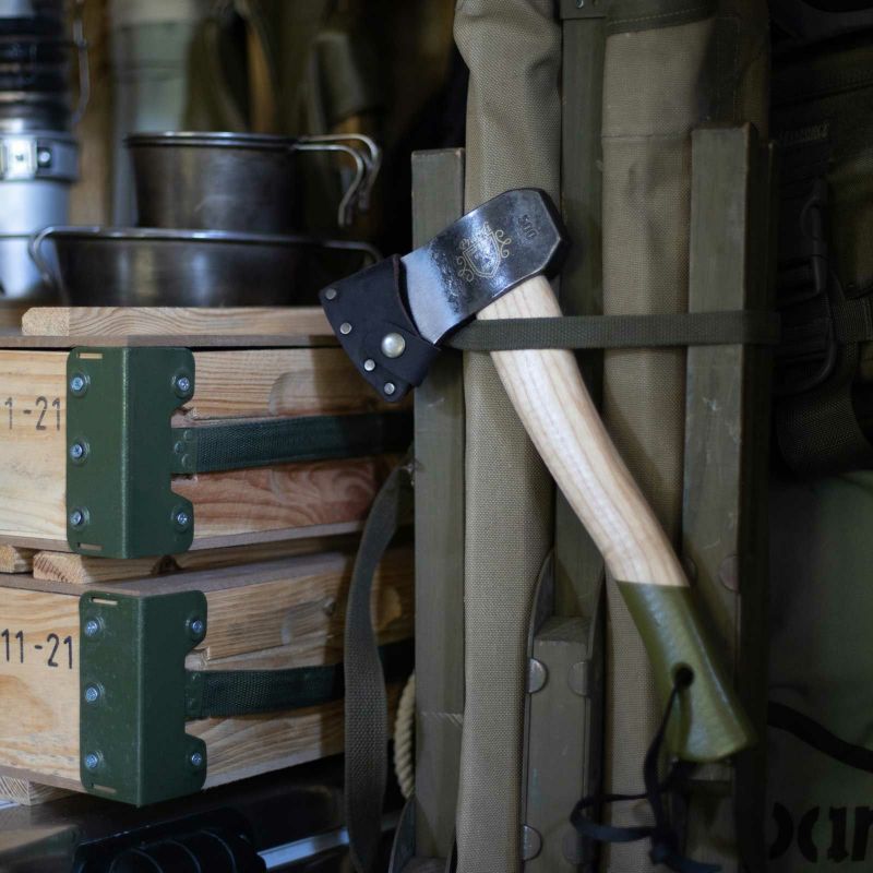 アウトドアやキャンプシーンのために造られたイタリア生まれのキャンプハチェットは、丈夫な柄と作業のしやすいヘッドを備えた一本です。