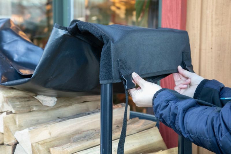 ログラック小(#15127)に収納した薪を、雨や雪による湿気から守るための専用カバー。