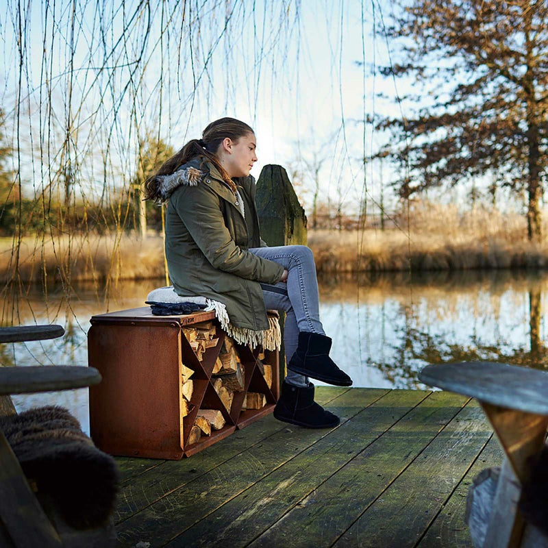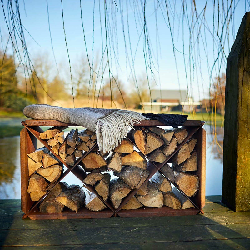 テラスストーブとセットで景色を作るのに最適な薪ラック。