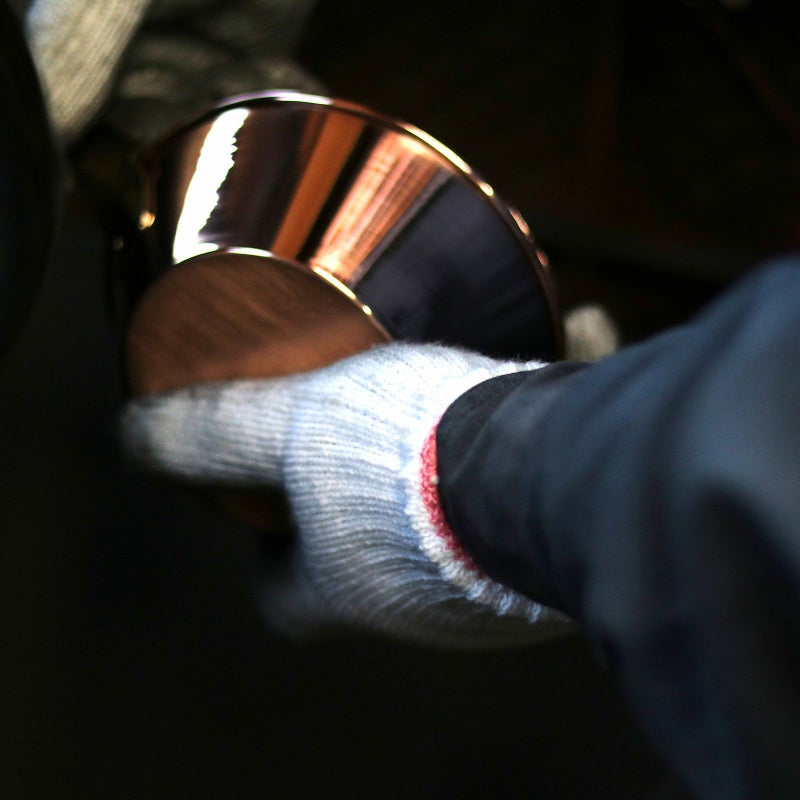 越後平野に広がる金属加工の街、新潟県長岡市・燕市で製造されるコッパーシェラカップは、今や希少な技法となった「へら絞り」により一点ずつ手作りされる銅製品です。