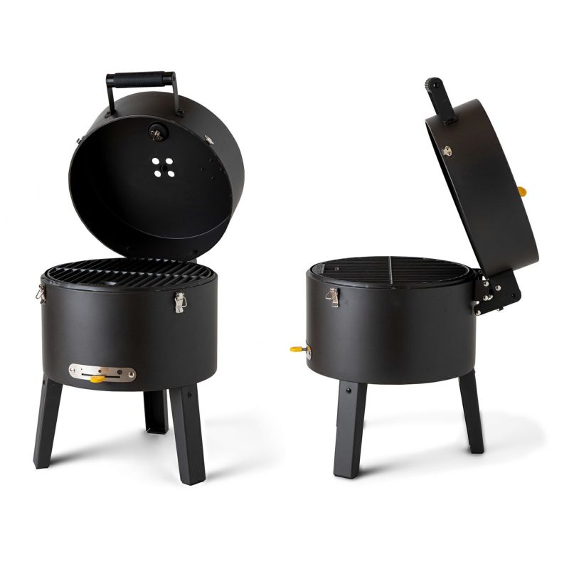 本体サイズ:W54×D40×H58cm グリル面:直径37cm 重量:重量:12.0kg 材質:【本体】スチール 【グリルプレート】鋳鉄(ホーロー仕上げ) 燃料:炭、ブリケット 組立式 中国製