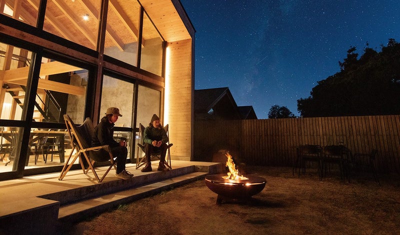 日本の火の文化に魅せられ、伝統的な灯籠の佇まいから着想を得て、木造建築の構造をヒントに設計されました。随所に日本文化への敬意が息づいています。