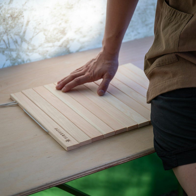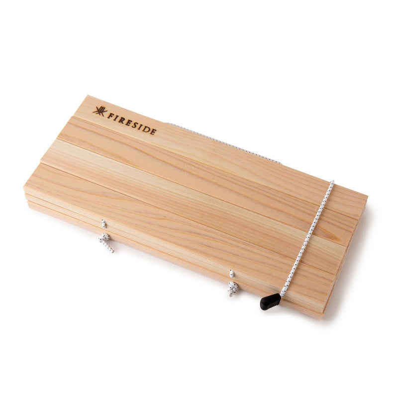 サイズ:360×280×厚み10 mm 重量:420g 材質:【木板】天然木(木曽ひのき) 【コードエンド】ナイロン 【ショックコード】天然ゴム、高強度ポリエステル 日本製