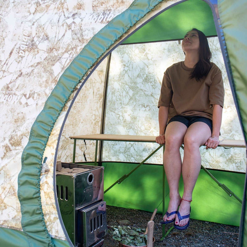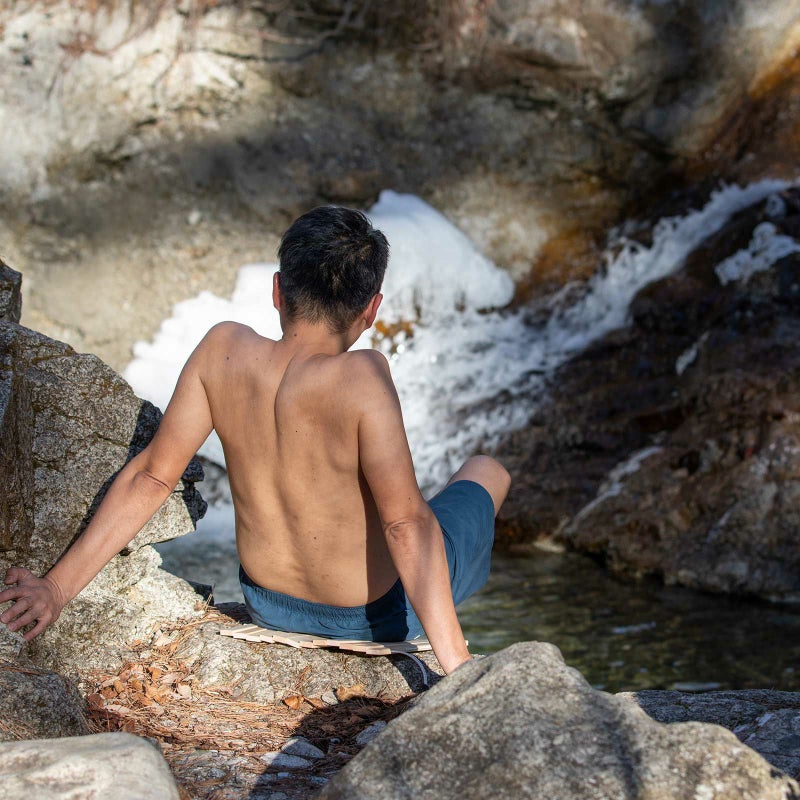 サウナから出る際にも、汗をマットに落とすことなくパタリと折り畳み、片手で持ち運びが可能です。