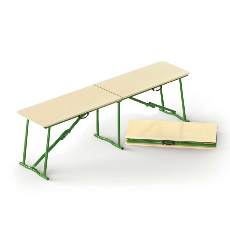 サイズ:【組立時】W164×D37×H54.5cm 【折畳時】W82×D36.5×H9.5cm 重量:10kg 材質:【座面】合板 【脚・フレーム】鉄 表面加工:【座面】オイル仕上げ 【脚・フレーム】ポリエステル塗装 ロシア製