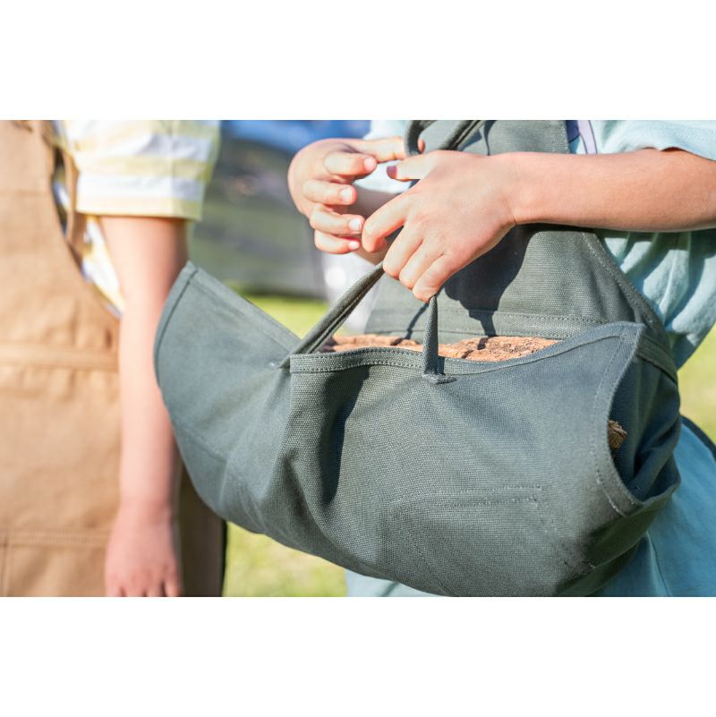 枝や薪運びの機能を想定していますが、使い方は自由!フィールドでどんぐりや松ぼっくりを集めたり、収穫した野菜をいれても良いかもしれません。