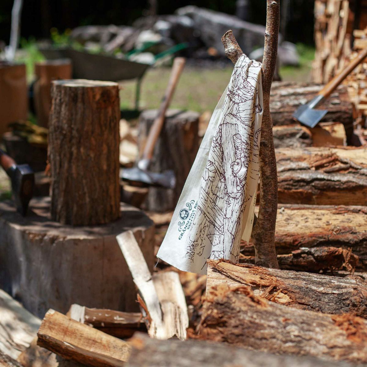 ファイヤーサイド 絵画手ぬぐい / 薪割り ベージュ