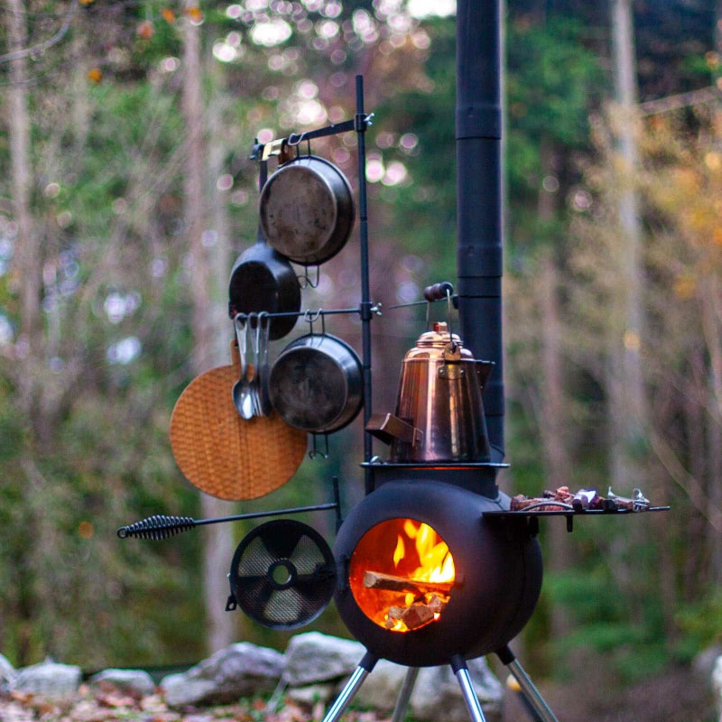 調理器具や火の管理に使うツールをディスプレイできるラック。