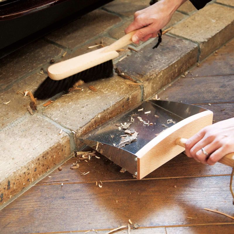 ステンレスとブナ材のコントラストが美しいナチュラルなちりとりと合わせて絵になるセット。