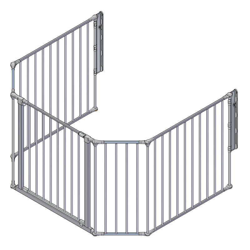 ゲート(出入口)を含むすべてのセクションが自由な並びで設定でき、薪ストーブのサイズや設置場所の条件に応じてレイアウトを変えることができます。