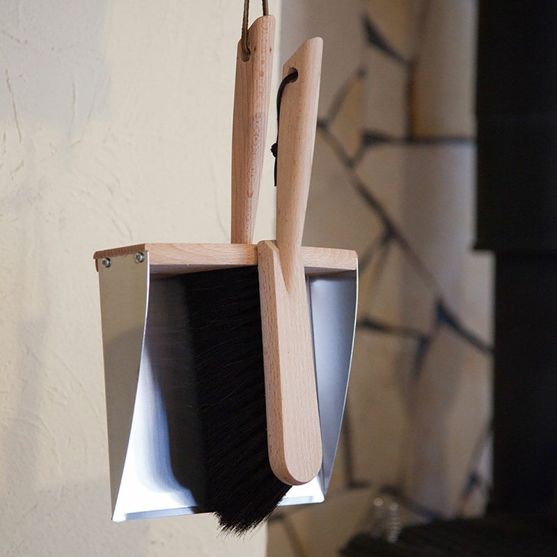 ステンレスとブナ材のコントラストが美しいナチュラルなちりとりと合わせて絵になるセット。