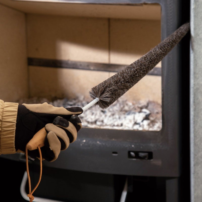 サイズ:ブラシ部分直径15〜50×L490mm(全体の長さ700mm) 重量:85g 材質:ヤギ毛、ブナ材、亜鉛メッキワイヤー ドイツ製 ※使用時は本体と煙突が完全に冷えていることを確認してください。