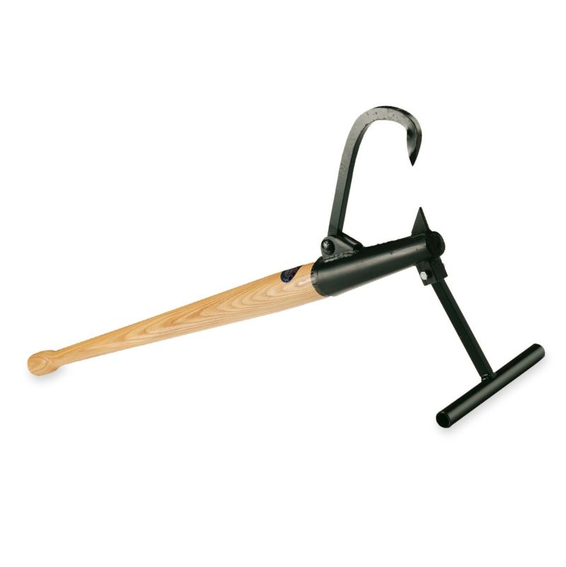 林業家御用達の“木回し”は、テコの応用で太い丸太を移動。スタンドバーで丸太を浮かせ固定することで、玉切りが楽々行えます。 地面から浮かせて作業するので、チェーンソーの刃が石などに当たる心配もなく、切りやすいひざの高さで、安全に玉切りすることができます。 製造はアメリカ・メイン州で150年以上の歴史を持つピーヴィー社。この林業用の道具は「ピーヴィー」とも呼ばれ親しまれています。