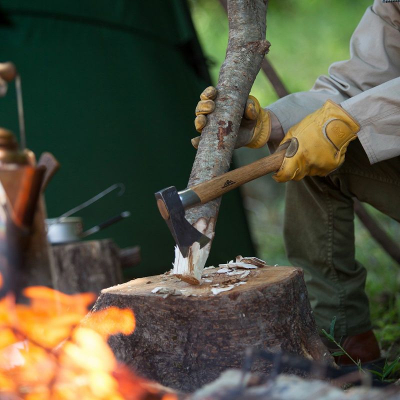 枝払い、薪割り、彫刻はもちろん、キャンプでは小屋作りや調理、ナイフとしての活用まで、これ1本ですべてがまかなえる逸品。