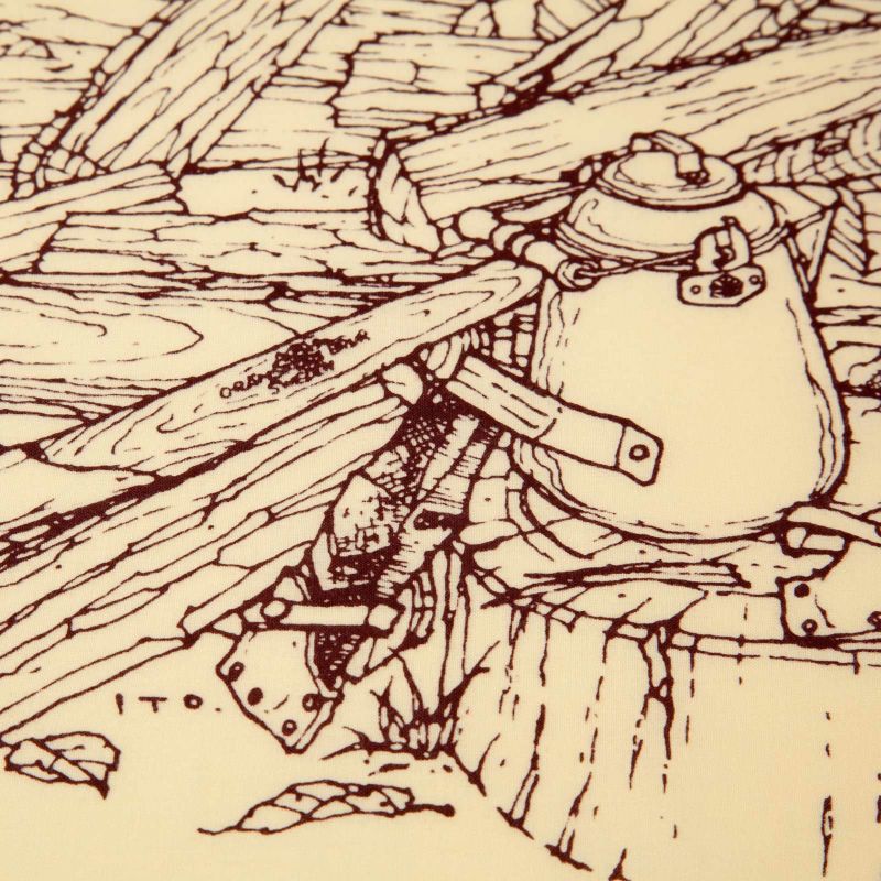 ファイヤーサイド 絵画手ぬぐい / 薪ストーブ グレー