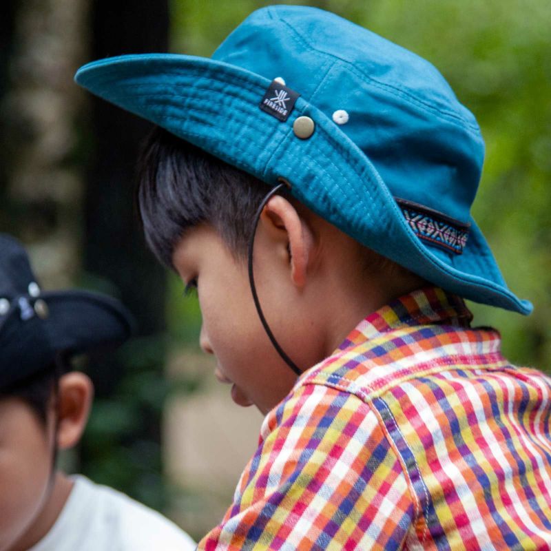 帽子のサイドにはスナップボタンも付いているので、テンガロンハット風にアレンジも自由!