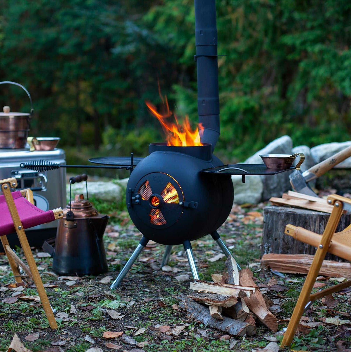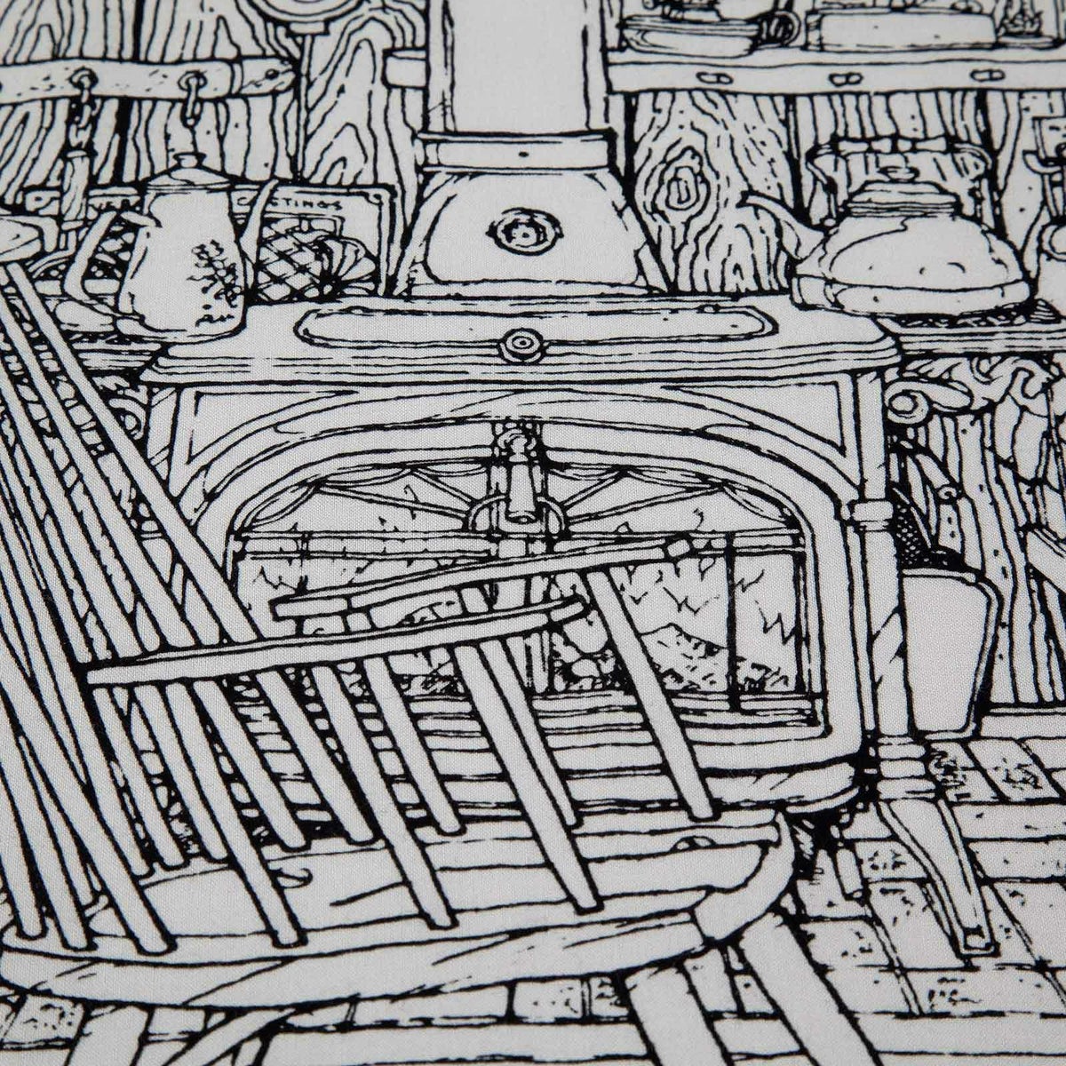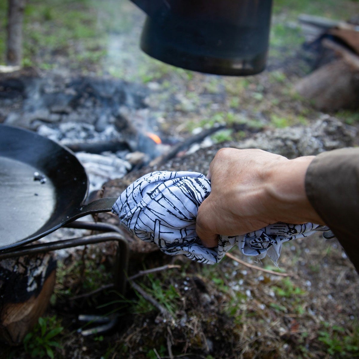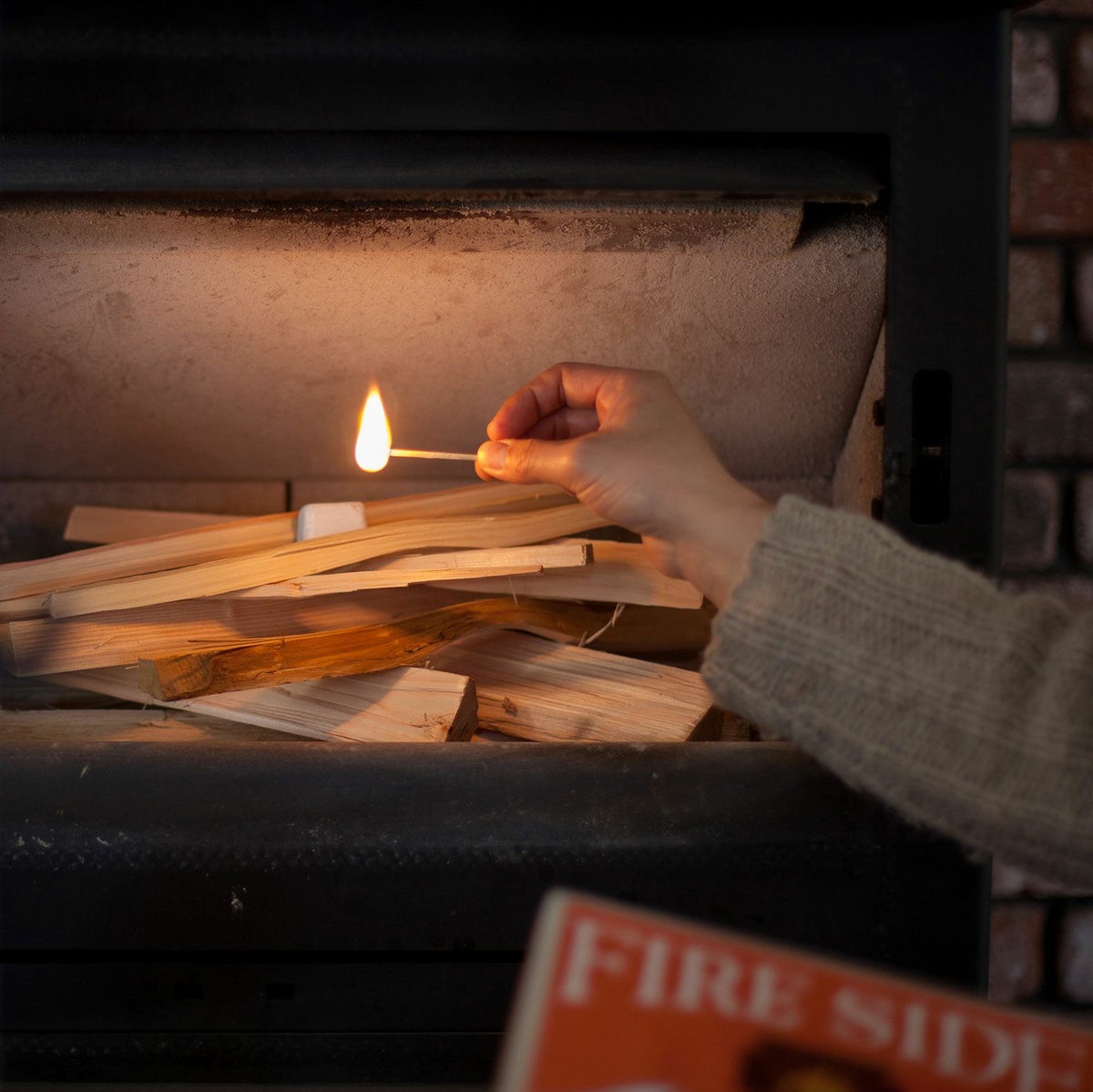 ファイヤーサイド 絵画手ぬぐい / 薪ストーブ グレー