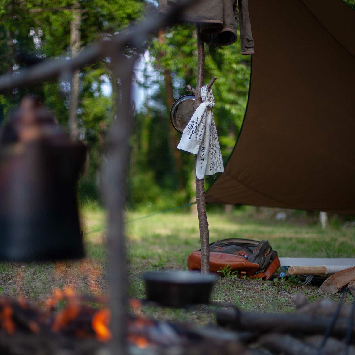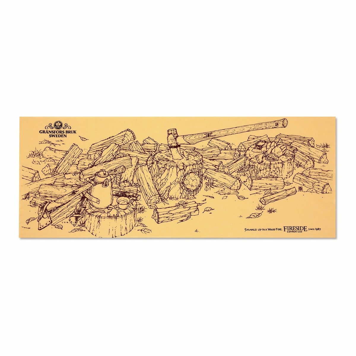 ファイヤーサイド 絵画手ぬぐい / 薪割り ベージュ