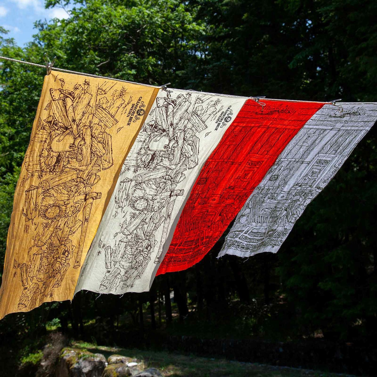 ファイヤーサイド 絵画手ぬぐい / 薪割り イエロー